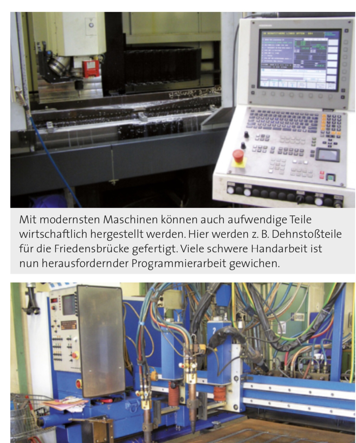 Durch den Einsatz von computergesteuerten Maschinen (Fräsmaschinen, Brenn- und Plasmaschneideanlage) wurde ein Weg eingeschlagen, der bei sämtlichen Neuanschaffungen konsequent fortgesetzt wird: weg von manueller Tätigkeit, hin zur Überwachung maschineller Tätigkeit.